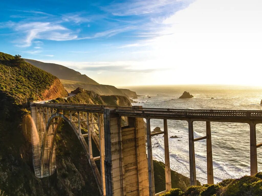 Este clásico de California es probablemente el viaje costero más famoso del continente, y con razón. El tramo entre San Francisco y Los Ángeles por la Highway 1 regala vistas de acantilados dramáticos, el puente Bixby en Big Sur, pueblos como Carmel-by-the-Sea y playas donde puedes ver elefantes marinos descansando.